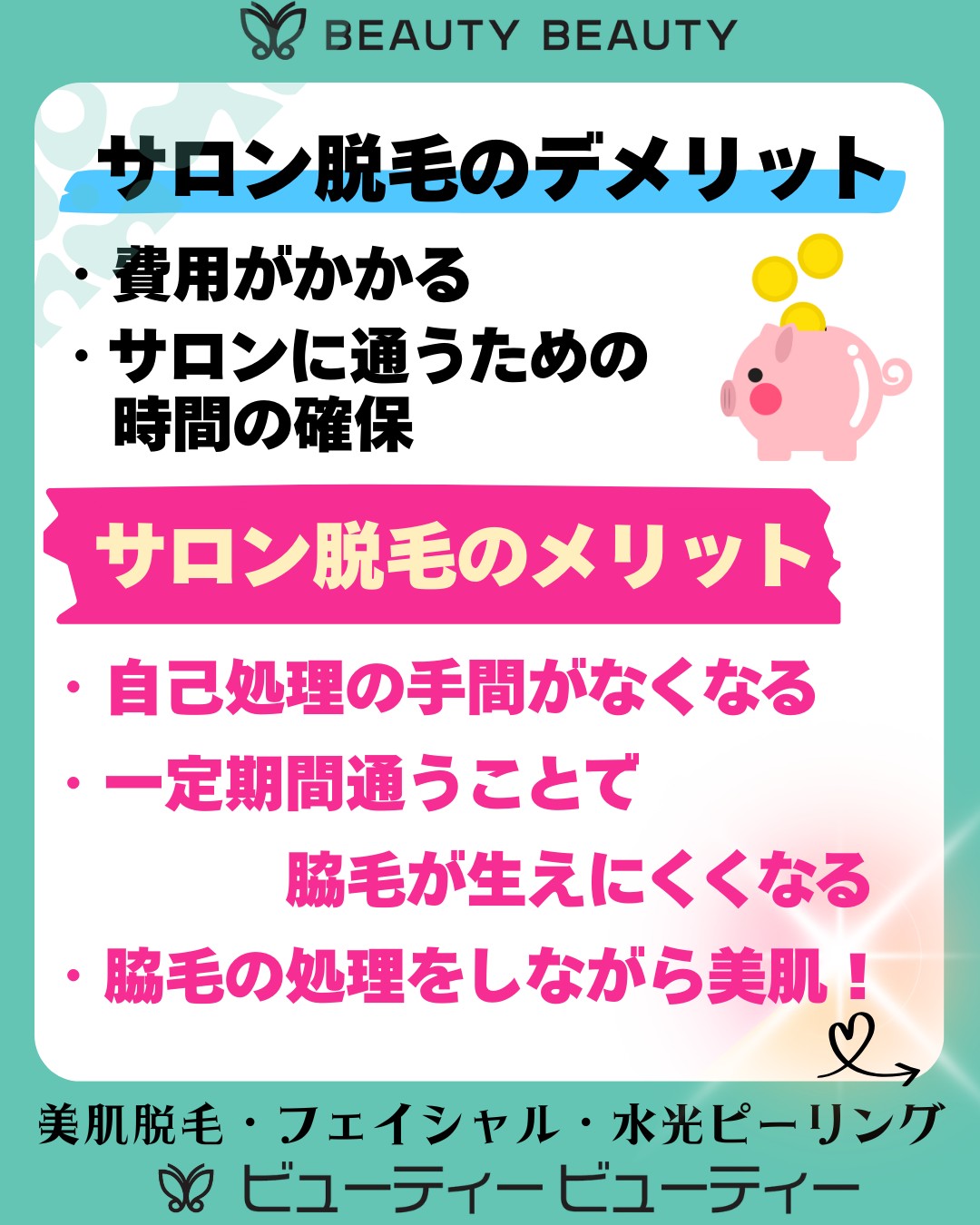 そんな後悔をしないように、1日でも早くサロンでのワキ脱毛をオススメしています💕